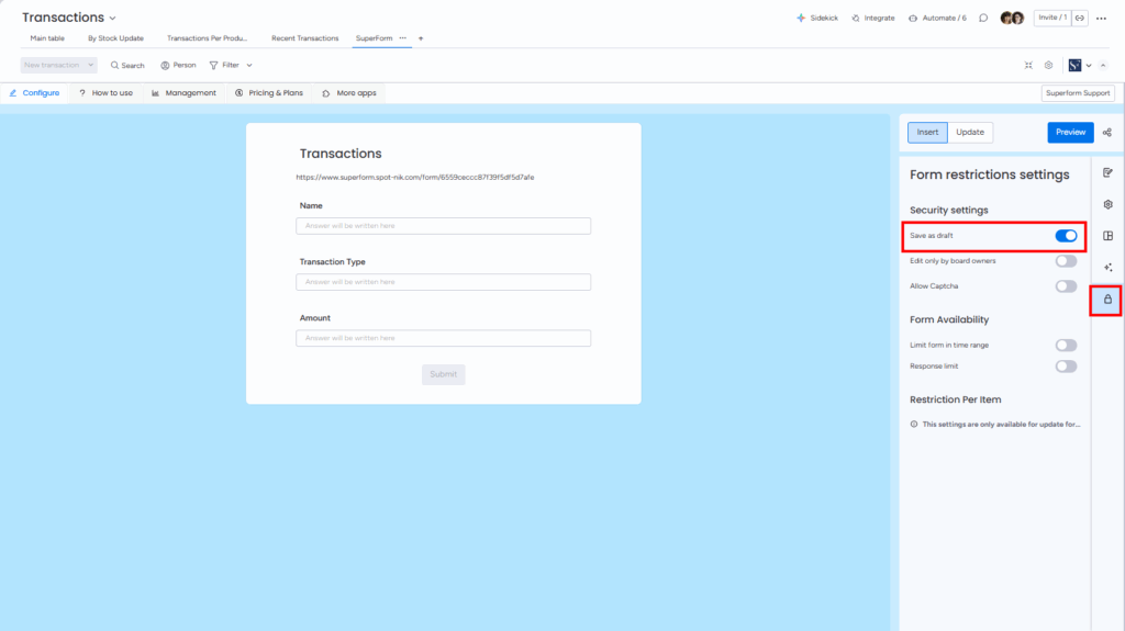 SuperForm makes it possible for end users to save drafts while they are editing the form. This is especially useful if the form is long or they need to stop filling it in the middle.